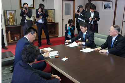 (魚津市はこれまでに29の事業所・団体と災害時支援協定を締結しており、30番目の締結。)